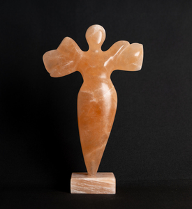 Aiyanar paardje, oranje albast. Op belgisch hardstenen sokkel.